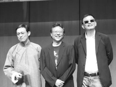 张大春(中)和作家马家辉(左)、导演王家卫(右)在去年的香港书展上
